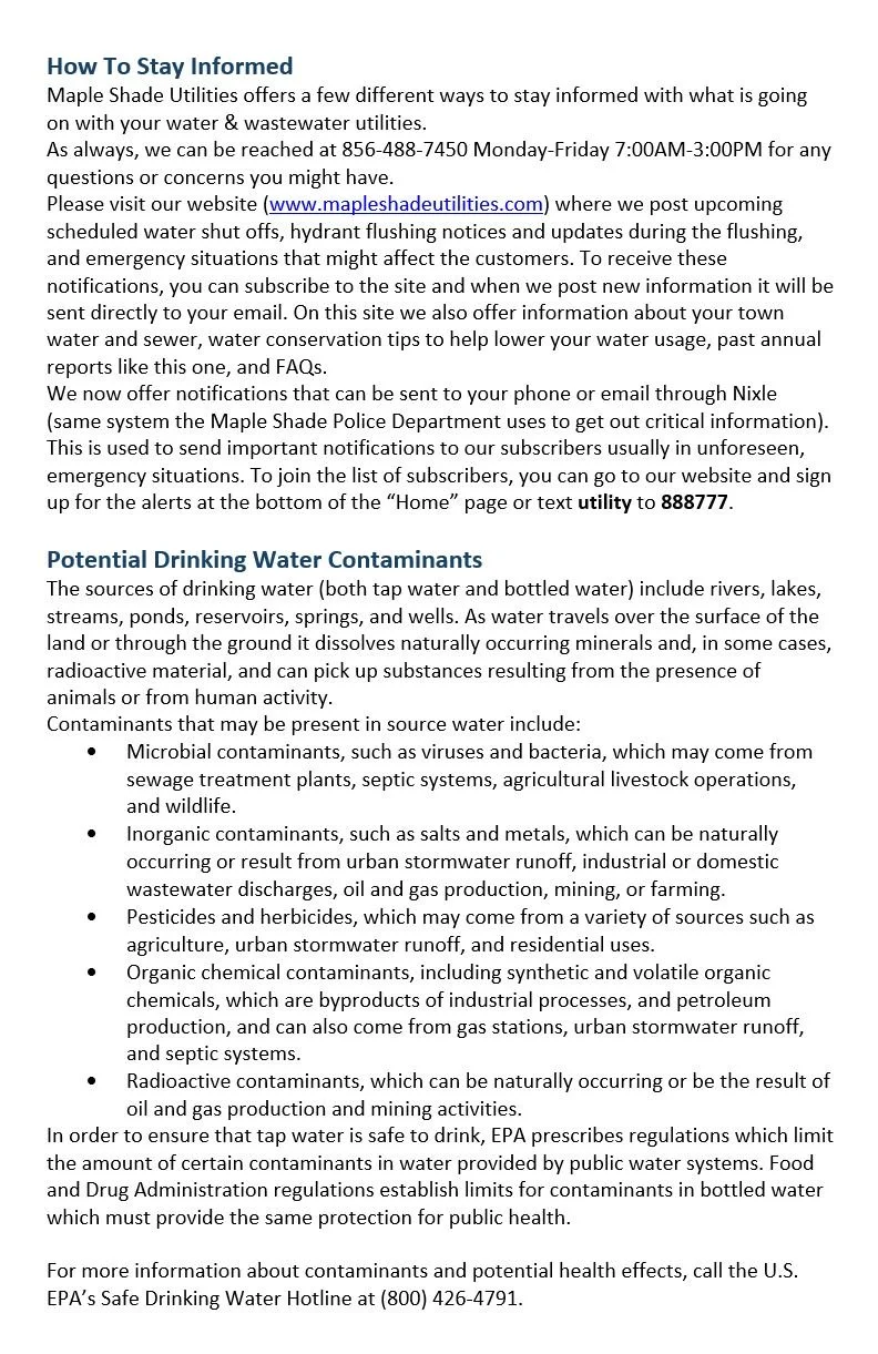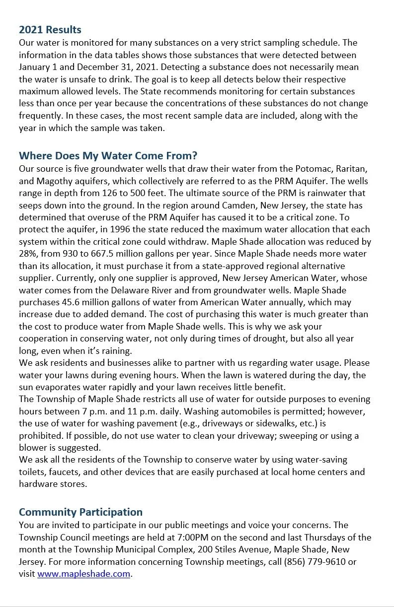 2021 Consumer Confidence Report - Annual Water Quality ReportIf you would like a hard copy of this report, please call the Utilities at 856-488-7450.